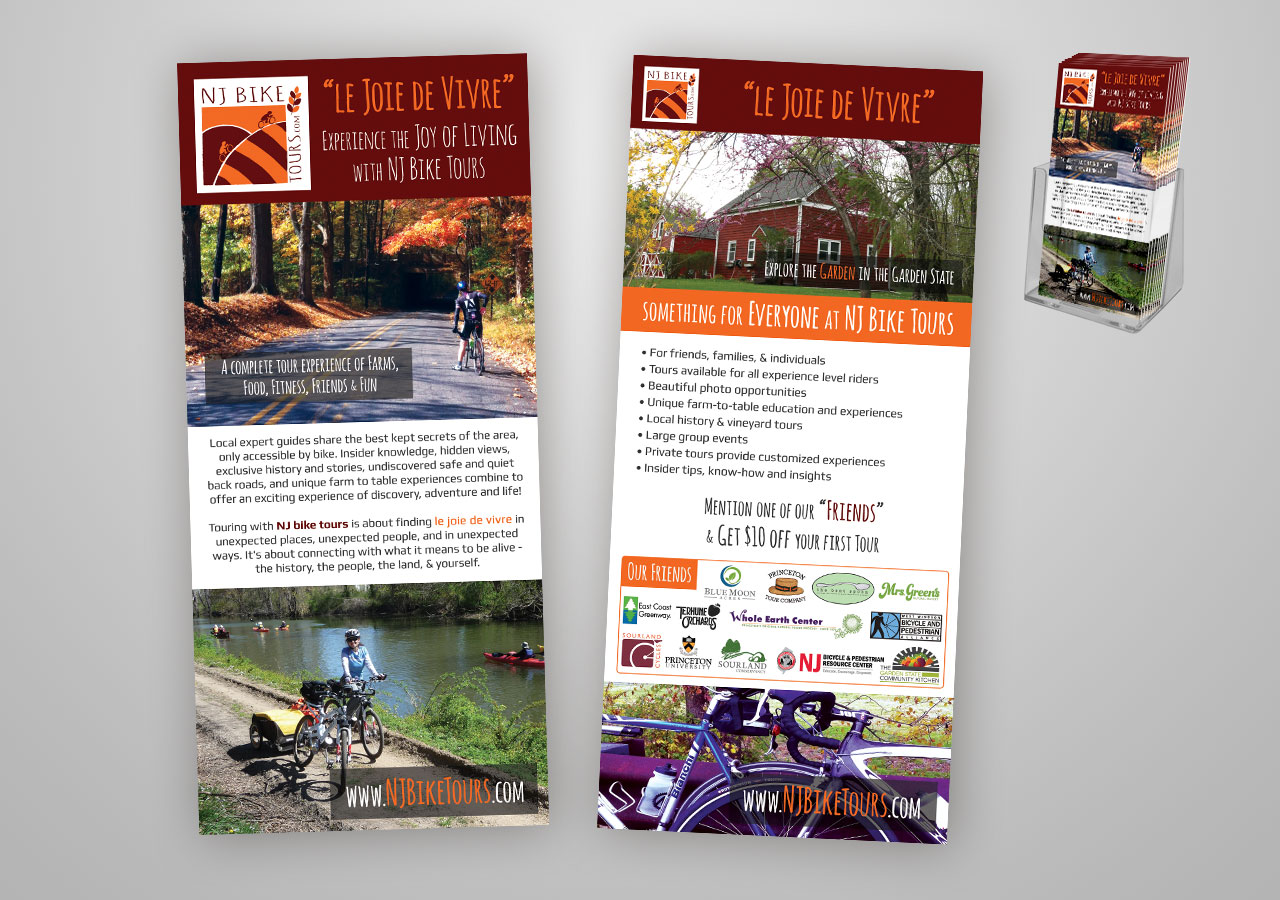 Jake needed to figure out how to get the word out. Besides the usual SEO treatment and social media activity, Jake wanted to get out there. We decided on a 4" x 9" brochure that he can leave at a handful of local farms, vineyards, & bike shops.