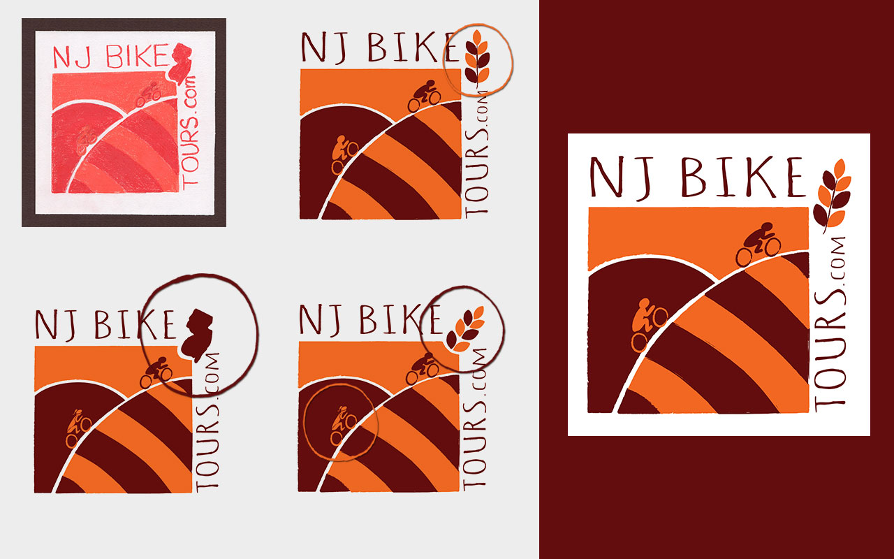 Jake of NJ Bike Tours was in need of a logo for his venture. Adam and I decided that the bold orange would be fitting as a fun and exciting color (which also related to his locale of Princeton near the University). The deep red gives a feeling of "the finer things" while also promoting an active lifestyle. I started with a Sketch and then moved forward with a handful of iterations via illustrator until it was just right!